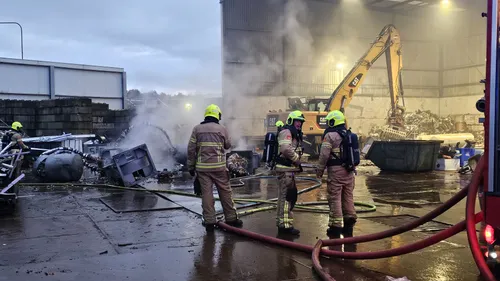 bedrijf hielpen de brandweer door met een kraan het afval uit elkaar te