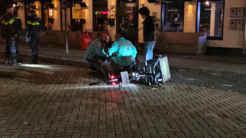 Hulpdiensten waren snel ter plaatse. Ambulancemedewerkers hebben de bezorger nagekeken. Hij had pijn maar hoefde niet mee naar het ziekenhuis. Dat zorgde voor enige opluchting bij voorbijgangers die de aanrijding hadden zien gebeuren. De politieauto liep flinke schade op. In de bumper zat een groot gat. Ook was de linker koplamp kapot.