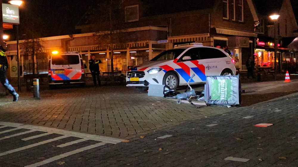 De aanrijding op de Stationslaan in Nunspeet zorgde zaterdagavond voor veel bekijks. De maaltijdbezorger kwam hard ten val maar hoefde gelukkig niet mee naar het ziekenhuis. De politie kijkt nog naar de oorzaak van de aanrijding en spreekt van een vervelend incident voor alle betrokkenen.